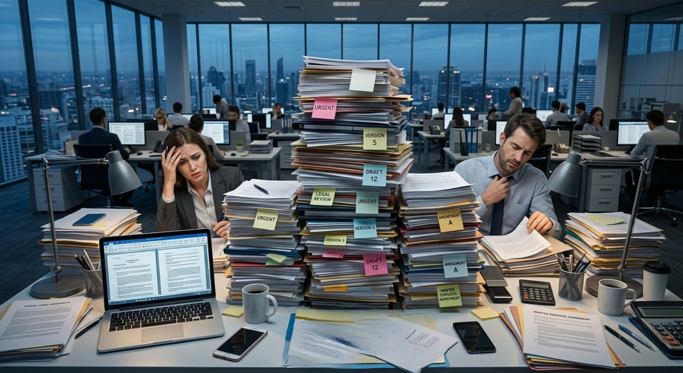 As scale increases, contracts start living across many places at once: signed PDFs, procurement workflows, email threads, CRM notes, finance rules, spreadsheets, amendments, and side conversations. The enterprise may think it has one commercial reality, but in practice it has multiple partial versions of it.